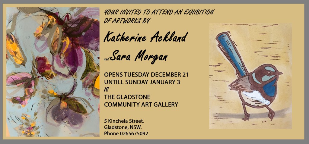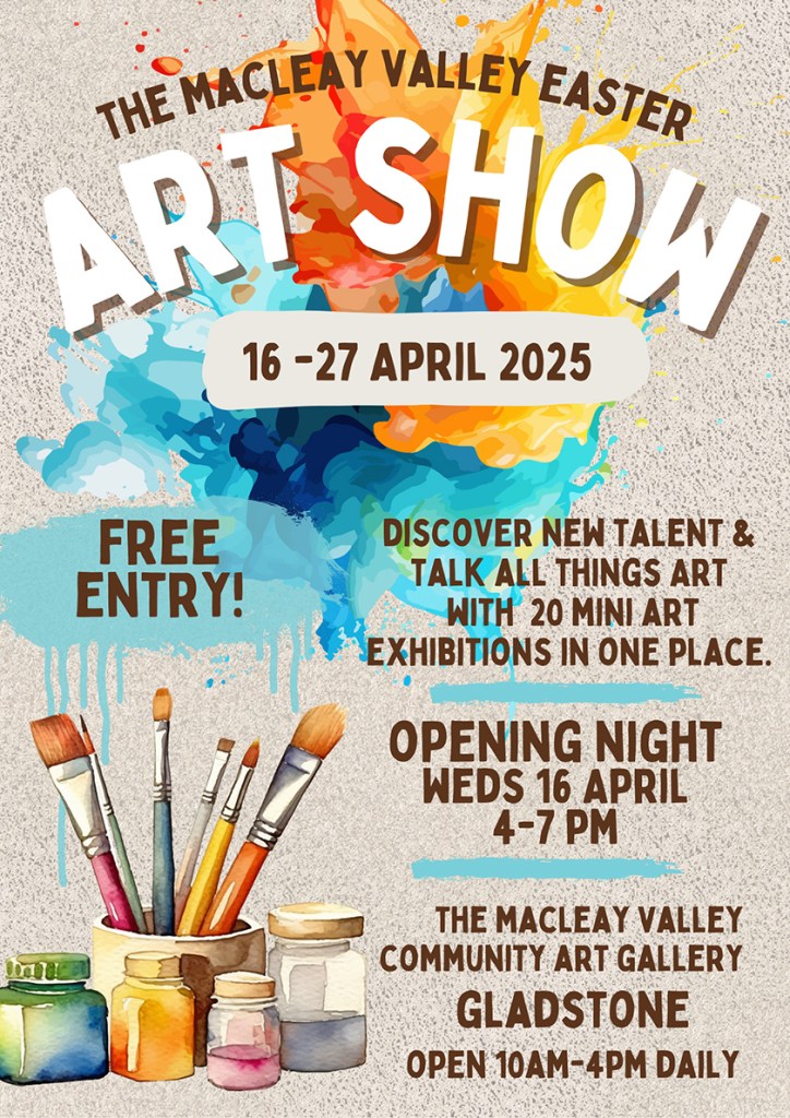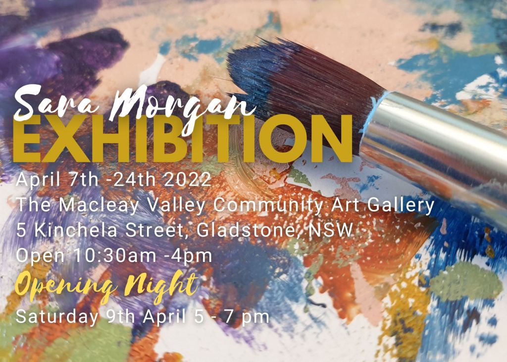 Macleay Valley Community Art Gallery, 5 Kinchela Street Gladstone. Thursday 7th April – Sunday 24th April, 2022.